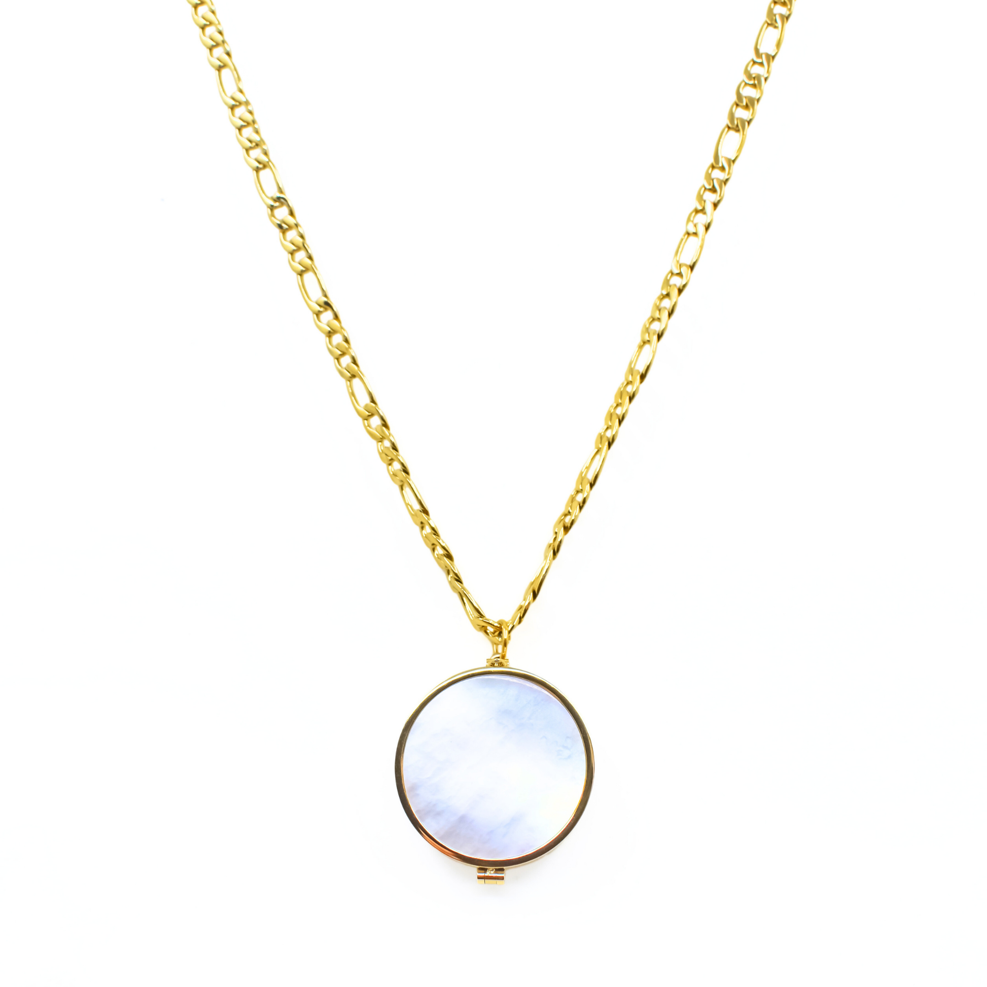 Gracefully refined, The Aura Lip Balm Necklace in Gold embodies the harmony between elegance and innovation. Inspired by the natural glow of mother of pearl, its smooth iridescent finish captures every flicker of light — a quiet celebration of purity, femininity, and grace.